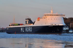 RINA C Ro-Ro Cargo ship equipped for carriage of container, Unrestricted Navigation, Aut-Ums, Aut-Port, Star Hull NB, ICE class 1A, Green Star 3 Design, Inwatersurvey